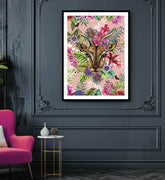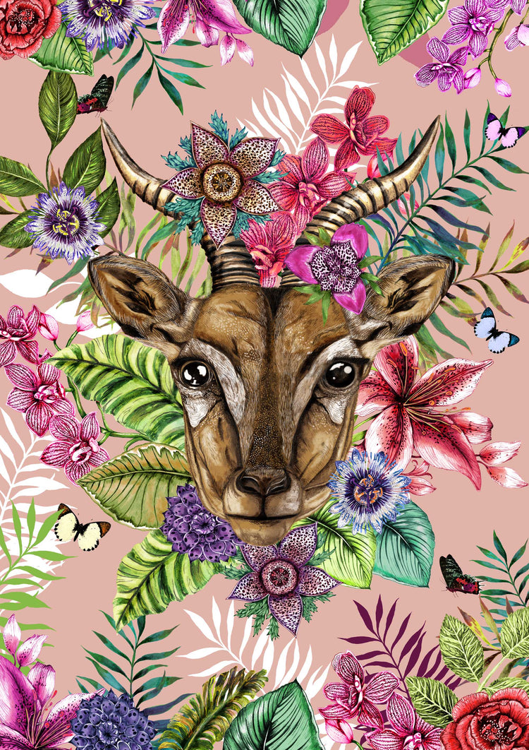 House of Norris introduces their newest Collection, the Totem Collection. Totems can be animals, plants, or natural objects that are believed to have spiritual significance. The animal heads watch over you and their spirit will keep you safe from harm. This collection depicts glorious tropical animal heads surrounded by beautiful flowers and foliage to create an exotic and dramatic effect within your home. Get tropical with this striking framed or unframed art print. In varied sizes.
