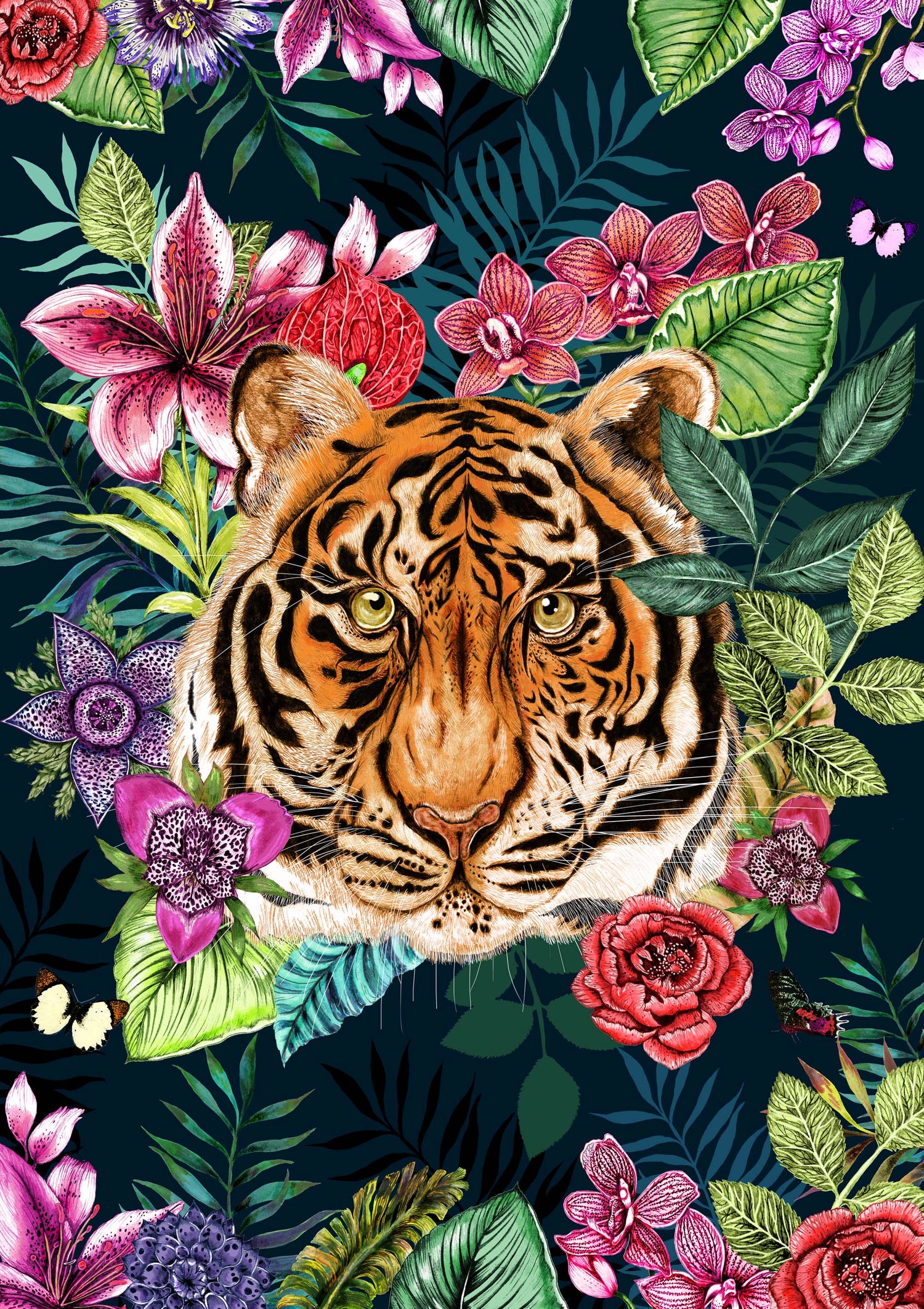House of Norris introduces their newest collection, the Totem Collection. Totems can be animals, plants, or natural objects that are believed to have spiritual significance. The animal heads watch over you and their spirit will keep you safe from harm. This collection depicts glorious tropical animal heads surrounded by beautiful flowers and foliage. This is a framed art print giclee printed on textured matte fine art paper.