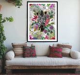 House of Norris introduces their newest collection, the Totem Collection. Totems can be animals, plants, or natural objects that are believed to have spiritual significance. The animal heads watch over you and their spirit will keep you safe from harm. This collection depicts glorious tropical animal heads surrounded by beautiful flowers and foliage. This is a framed or unframed art print giclee printed on textured matte fine art paper. In varied sizes.