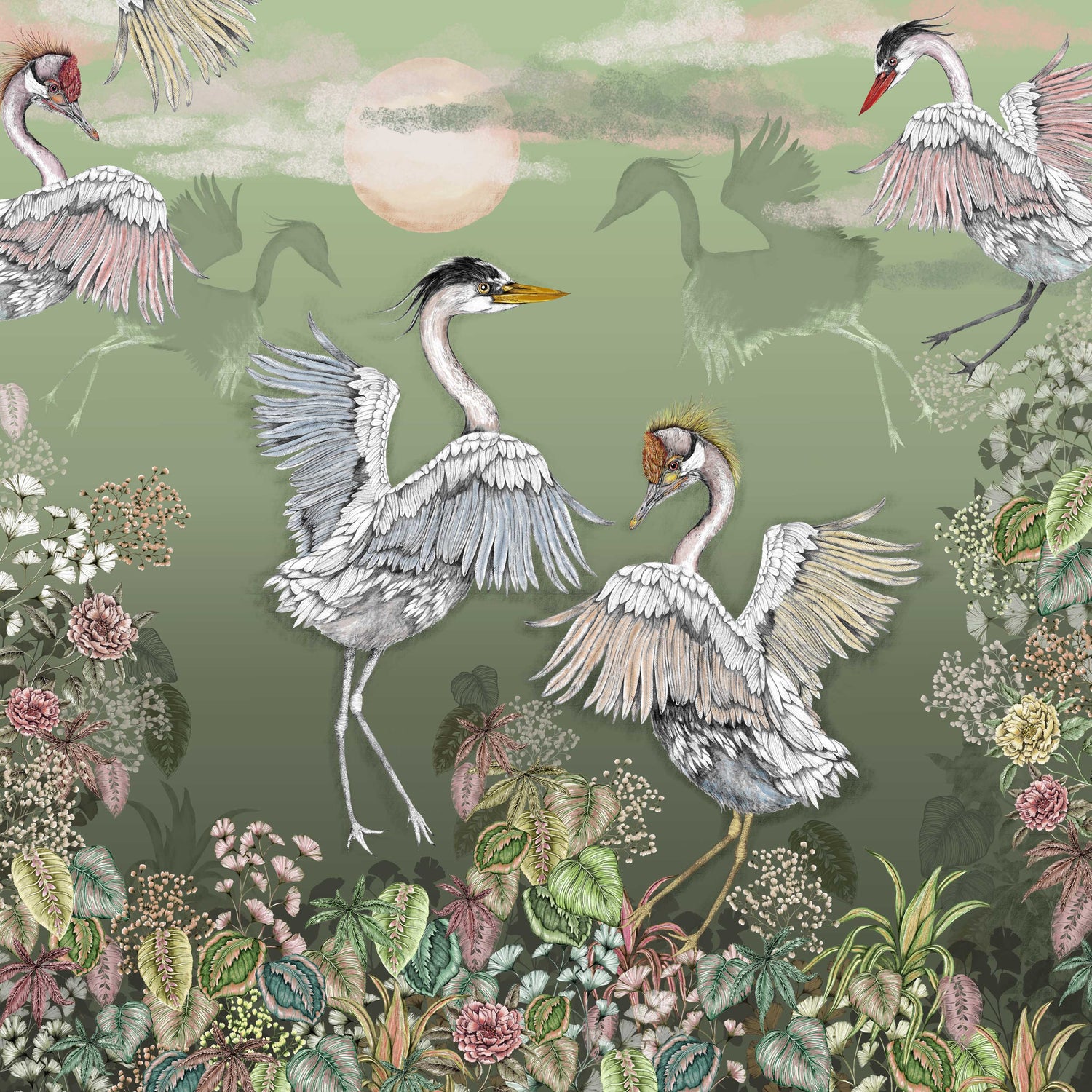 This collection is an asian inspired collection based on Japanese Art. It features Crane birds dancing in the sunset with an array of Japanese Flowers and Foliage. This design is heavily researched with the current colour trends and is saturated with faded colours, namely sage green and faded peaches and pinks.