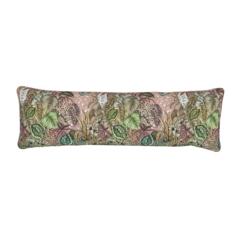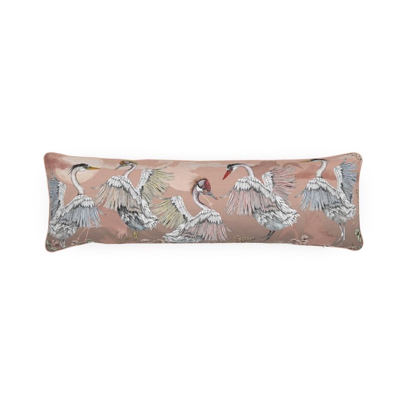 This collection is an asian inspired collection based on Japanese Art. It features Crane birds dancing in the sunset with an array of Japanese Flowers and Foliage. This design is heavily researched with the current colour trends and is saturated with faded colours, namely sage green and faded peaches and pinks. This is a beautifully printed almost antique design based on traditional Japanese art. This bolster cushion is high luxury and printed on a high quality velvet with a stunning satin trim.